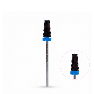Esta punta inicia en la parte de abajo con grano fuerte, mitad medio y superior fino. Se recomienda principalmente en sistemas como acrílico o gel.